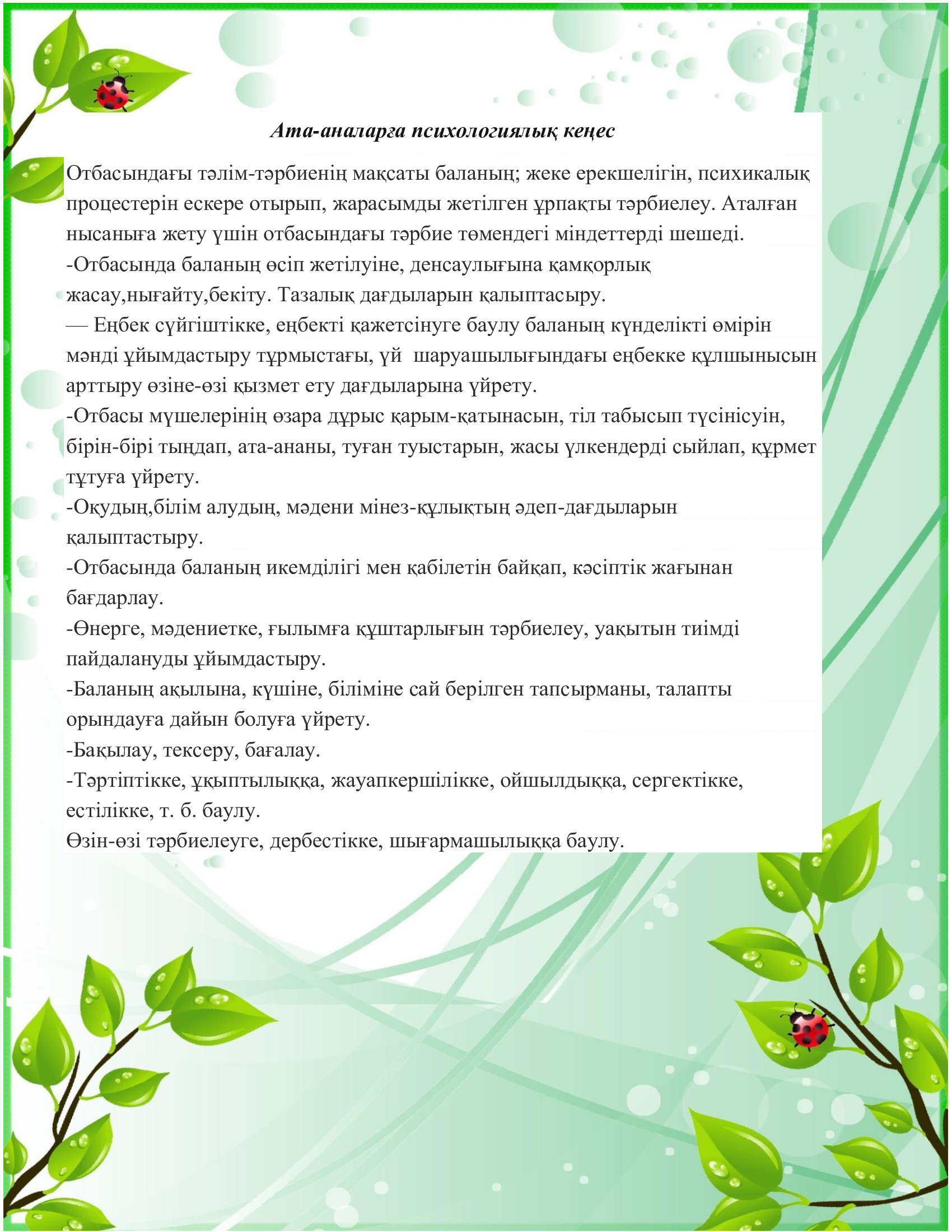 Ата-аналарға психологиялық кеңес