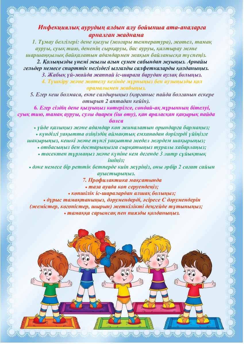 Инфекциялық аурудың алдын алу бойынша ата-аналарға арналған жаднама