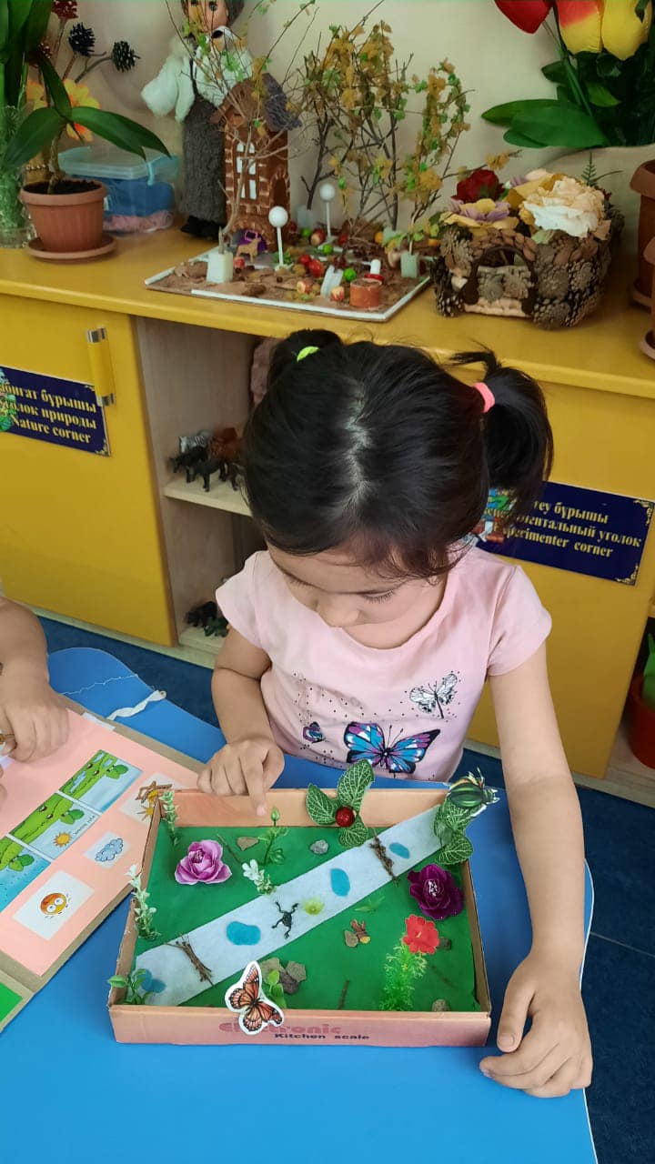 19.04.2021 жылы бөбекжайымызда мектепке дейінгі жастағы балалар мен олардың ата-аналарының экологиялық сана-сезімі мен тәрбиесіне ықпал ету мақсатында «Табиғатты жүрегіңмен түрт» экологиялық сауаттылық апталығы бастау алды. Ересек топтарда апталықтың ашылуына «Экоапта ашылу әзірлемесі» тақырыбында көрме ұйымдастырылды. Кіші топтар арасында «Эколяттарға бастама », Ортаңғы топтармен « Жұмбақтарды тап», ересек топтармен «Табиғат туралы не білетіндігіңді айт» тақырыбында ұйымдастырылған оқу қызметі жүргізілді.