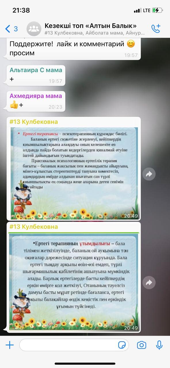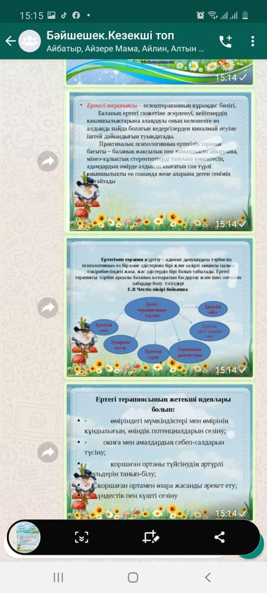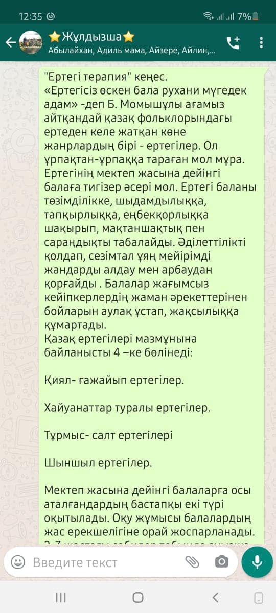 - Ата-аналармен жұмыс: Кеңес беру «Ертегі терапиясы».
