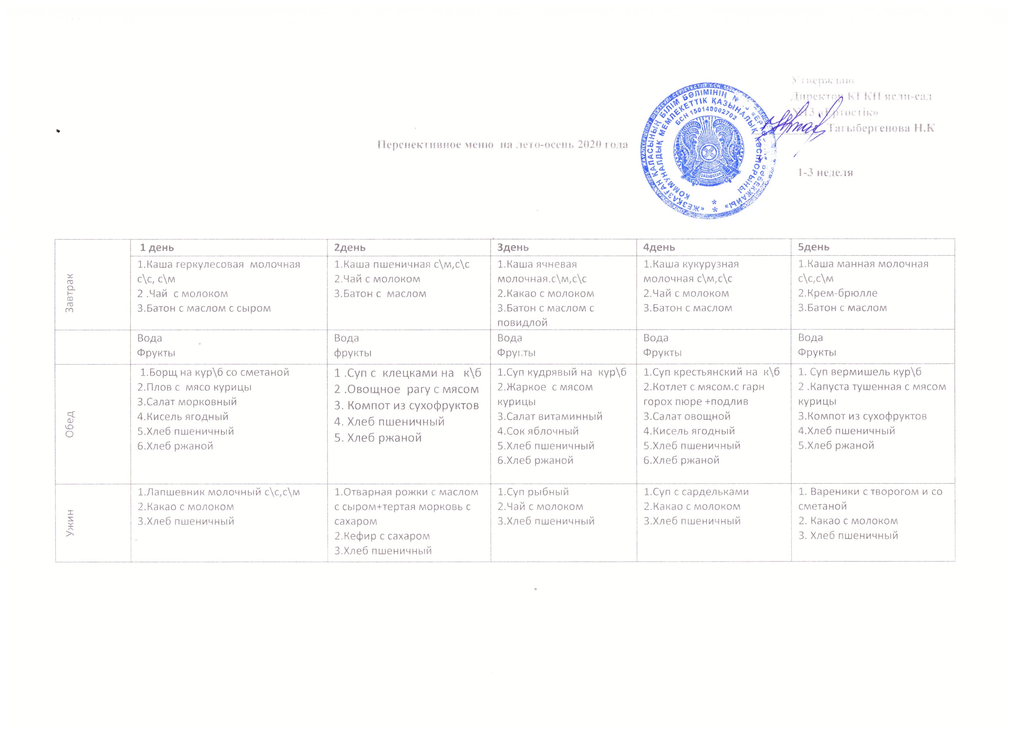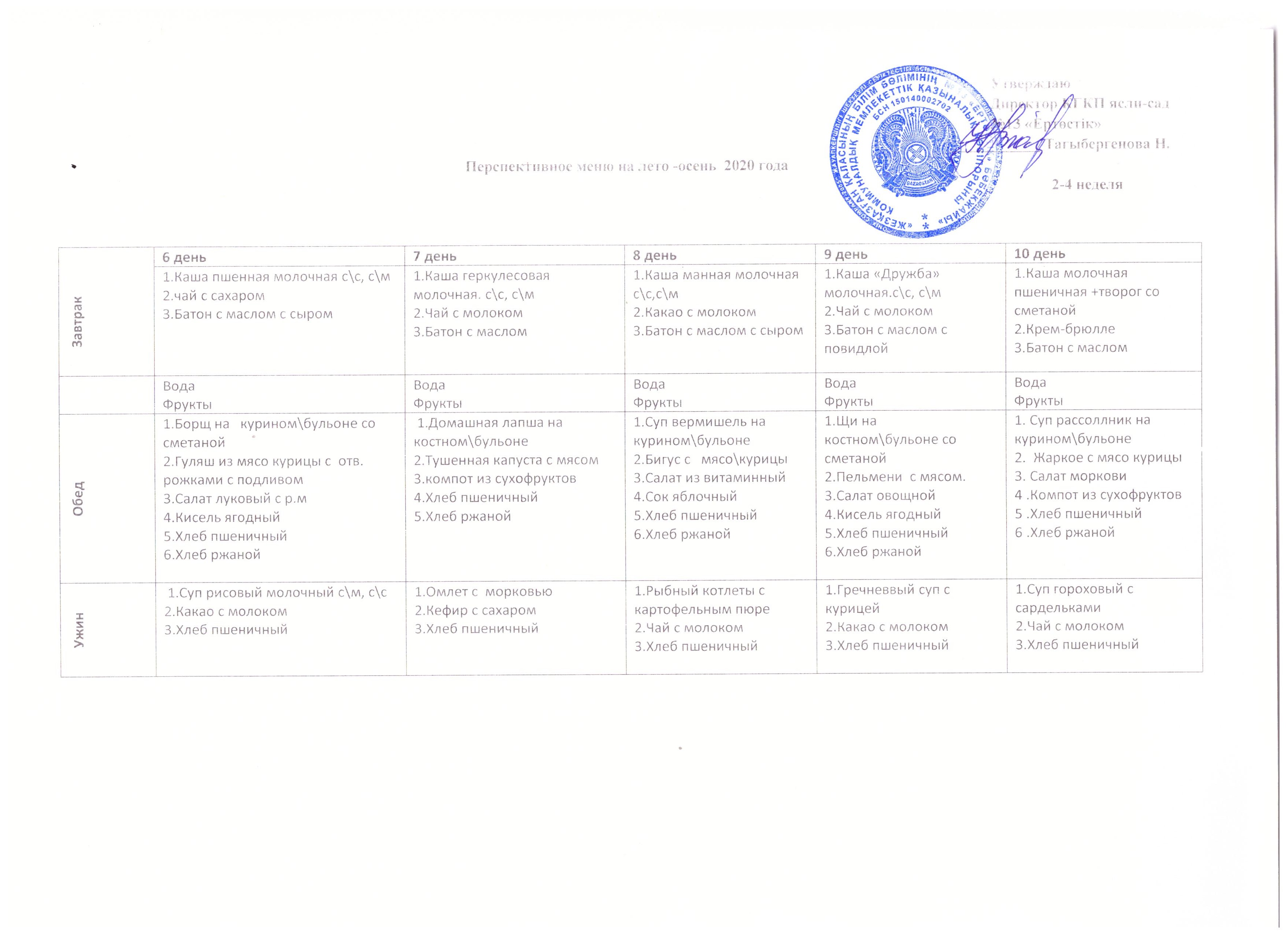 План питания